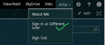 Why like this Microsoft? That was one of the best features of the personal menu (In SharePoint 2010). All SharePointers use it a lot to test permissions and to see how a site looks for a Reader for instance. I found that “Sign in as different user” option is not available in Personal Actions Menu while working on SharePoint 2013.