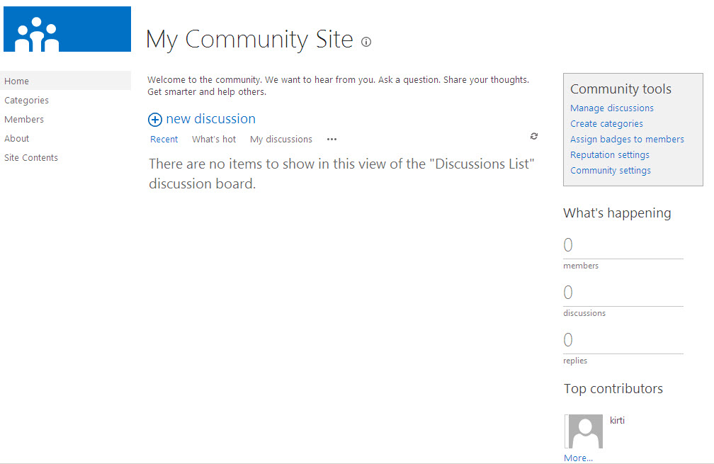 In SharePoint 2010 has discussions list in sites to facilitate discussions. SharePoint Server 2013 continue to provide this Discussion list, but also expand on the discussion concept by introducing two new site templates named Community Site and Community Portal.