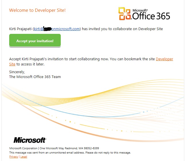 (6) That’s it. I am able to access the shared “Developer Site” using my hotmail account now.