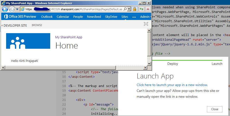 Overview: In this post , I will try to explain a simple app which allows me to create List and Lists Item.By using “Napa” Office 365 Development Tools, you can create your apps for SharePoint inside your browser instead of in Visual Studio. At any time, you can download your project and open it in Visual Studio for more advanced scenarios. (This post uses browser interface to create app)