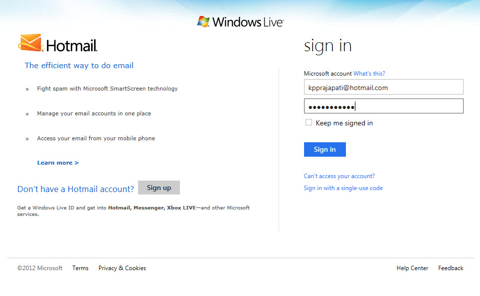 (5) I have used my hotmail account for login, so it will redirect me to hotmail sign in page, where i need to give my hotmail credentials.
