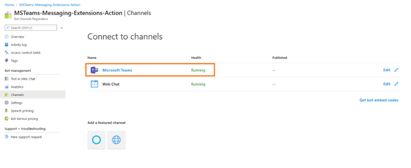 3. Follow the instructions to configure the MS Teams channel