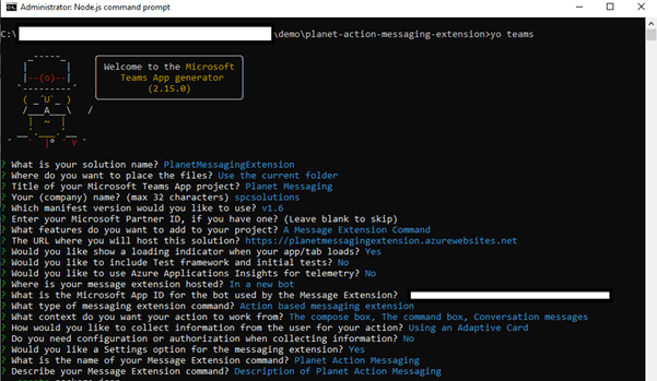 Implement Action Messaging extension with Yo Teams