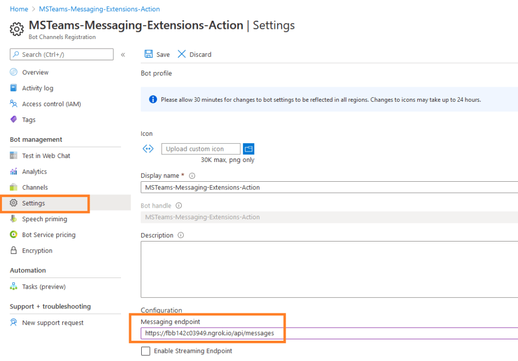 3. Update Messaging endpoint in Azure Bot Channel registration